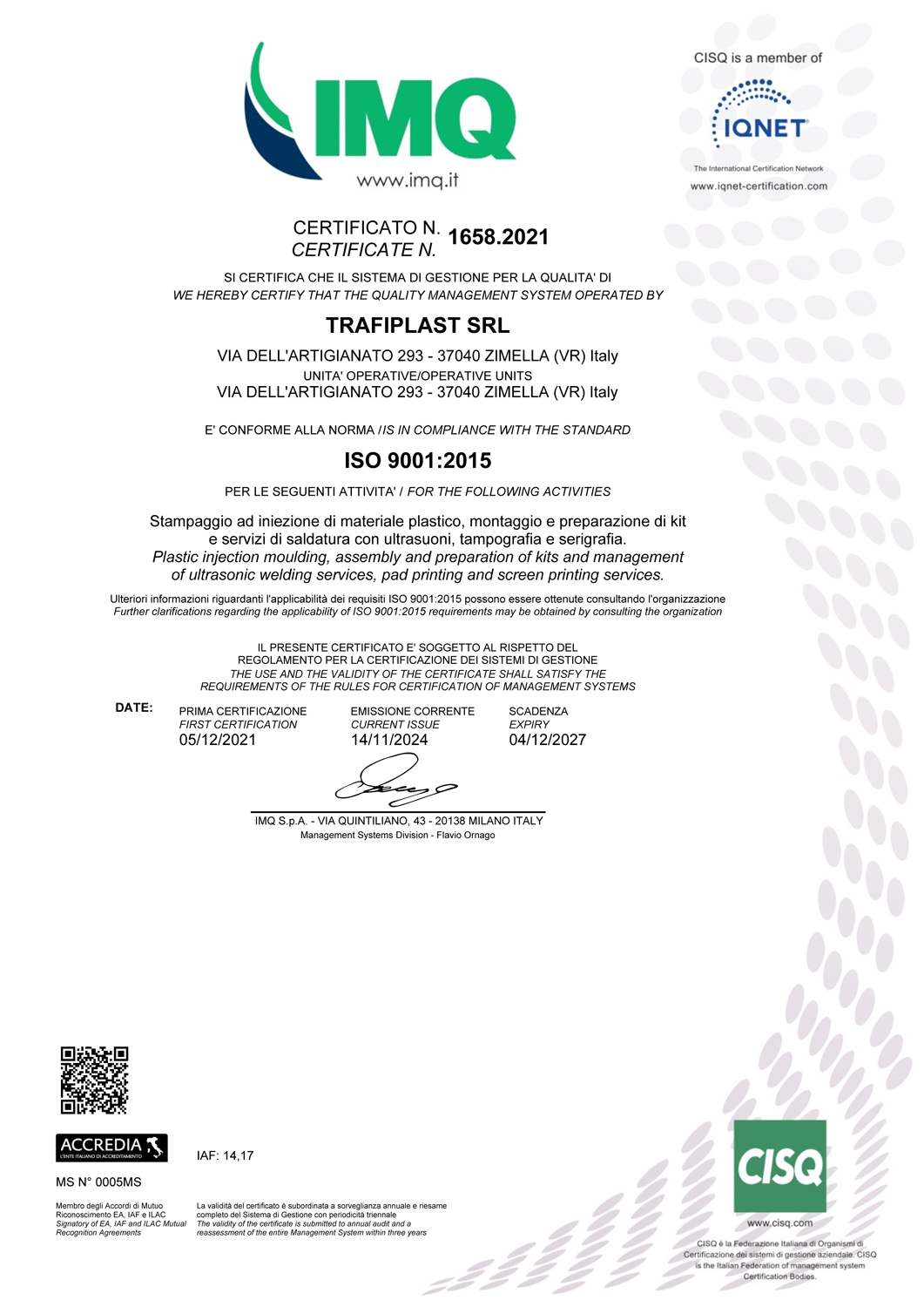 La nostra struttura adotta un sistema di gestione qualità ISO 9001:2015